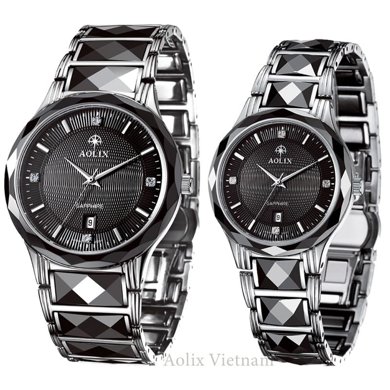 Đồng hồ đôi dây thép Aolix AL-6822 chính hãng với điểm nhấn kết đá vác cạnh tạo nhiều khía viền ngoài mặt kính và trên bộ dây thép. Với thiết kế tạo các khía như vậy sẽ tạo hiệu ứng thị giác và bắt sáng hoàn hảo, khi người đối diện nhìn vào chiếc đồng hồ mà hai bạn sỡ hữu tạo độ bóng và sáng bao quát cả chiếc đồng, tuyệt đẹp hơn bao giờ hết. Ở bốn góc giờ cố định là góc 3,6,9,12 sẽ được đính một viên đá sang lấp lánh làm tăng lên vẻ sang trọng và đẳng cấp cho cặp đồng hồ. Ngay góc 6 giờ là ô lịch hỗ trợ chức năng xem lịch ngày vô cùng rõ ràng và thuận mắt. Aolix cho ra đời 2 mẫu với cùng một thiết kể như sau: một mẫu mặt đen dây bạc kết đá và một mẫu dây bạc demi phối vàng kết đá. Hai mẫu mã trên đều mang đến một phong thái đẳng cấp, chuẩn doanh nhân cho bất kì cặp đôi nào sỡ hữu nhưng vẫn không kém phần tinh tế, đĩnh đạc. Đồng hồ sử dụng pin để duy trì hoạt động nên độ chính xác giờ gần như hoàn hảo. Dễ thay mới và dễ sửa chữa là các ưu điểm mà khách hàng luôn ưng ý khi lựa chọn một mẫu đồng hồ chạy bằng pin.